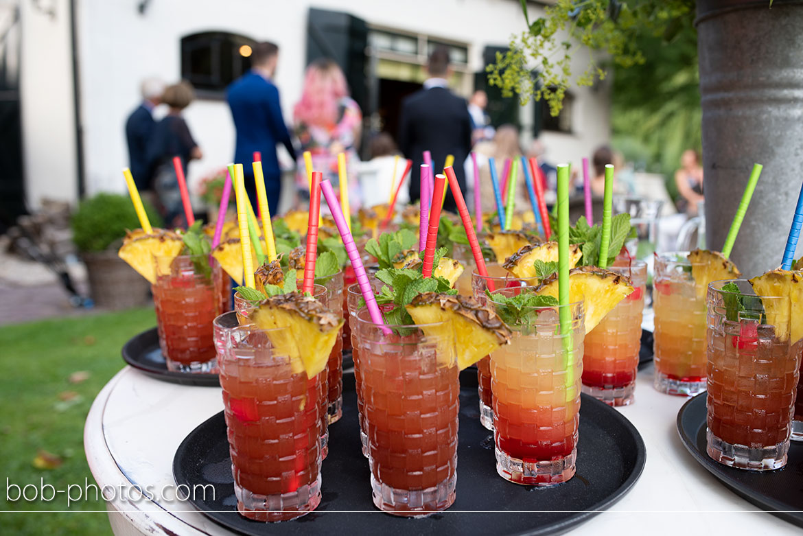 De middag werd verder gevuld met toosts op het bruidspaar het aansnijden van de prachtige bruidstaart en veel mooie gesprekken. Na de groepsfoto schoof het gezelschap aan tafel om te gaan genieten van het zeven gangen diner met bijpassende wijnen. Tussen de gangen door was er ruimte voor speeches en originele acts met een flinke dosis humor en creativiteit van de gasten.